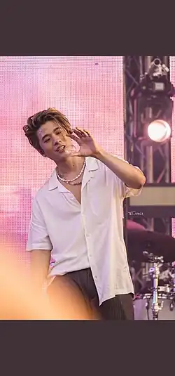 He auditioned for the record label 4NOLOGUE in 2018 and debuted as a member of the Thai boy group Nine by Nine, a one-year special project by 4nologue and production company Nadao Bangkok. The group has released five singles from 2018 to 2019 and a mini-album entitled "En-Route".[7] He served as the lead rapper and dancer of the group.[1] As part of the project, he starred in the TV series In Family We Trust (2018) as Kuaitiao and Great Men Academy (2019) as Good.[6][8]