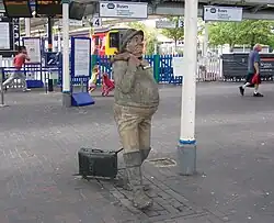 Skegness was dubbed "the Blackpool of the East Coast" or "Nottingham by the Sea". It has a mascot, the Jolly Fisherman, designed by John Hassall in 1908 for the Great Northern Railway; its slogan, "Skegness is so bracing", is a reference to the chilly prevailing north-easterly winds that can and frequently do blow off the North Sea.[3] A statue of The Jolly Fisherman now greets passengers as they arrive at the station, when entering through the main entrance.