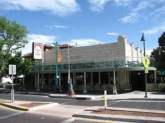 The Skinner Building is a historic building in Albuquerque, New Mexico, considered to be one of the best examples of Art Deco architecture in the city.[2][4] Originally a grocery store owned by J.A. Skinner, it was designed by local architect A.W. Boehning and built in 1931. The building is of brick construction, with a street facade of white terra cotta tile on the north and west sides. Its exterior features a variety of decorative details including fluted towers, grill work, stained glass, and geometric patterns.[2] The Skinner Building was added to the New Mexico State Register of Cultural Properties[5] and the National Register of Historic Places in 1980.[1]