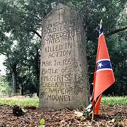Camp Captain Mooney Cemetery was established on the same day of the battle. The cemetery is named after the Camp Captain Mooney outpost in the vicinity of where the battle occurred. The camp name comes from George Mooney (Builder of the Confederate Gun Boat in Jacksonville, on whose land it was located.[3] It is owned by the United Daughters of the Confederacy.[4]