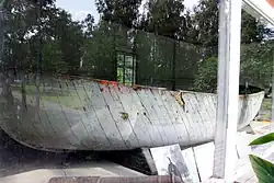 British total casualties including captured were 52, and in the end 16 or 18 of them perished. Nine fallen British marines and sailors were left behind and are buried in Maria graveyard in Kokkola. In addition to the gravestone, for the memory of the battle there is a monument at Halkokari and a captured English launch on exhibit on the edge of central Englanninpuisto. The boat was apparently in 2020 the only captured Royal Navy boat on display in the world.[5][6][7]