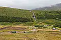 Skutulsfjörður is the westernmost fjord branching off the major Icelandic fjord of Ísafjarðardjúp. The town of Ísafjörður is located in the fjord. Two main valleys enter from Skutulsfjörður, Engidalur and Tungudalur, separated by the mountain Kubbi. On the far north side of Engidalur is the Ísafjörður cemetery. The river Langá flows through Engidalur. In Tungudalur, the town's golf course and ski area. There is a golf course and ski area in Tungudal, but from it the Vestfjarðagöng tunnel is dug across to Botnsdalur in Súgandafjörður and Breiðdalur in Önundarfjörður. Dagverðardalur or Dögurðardalur, as it was named in Gísla saga, runs up from Tungudal, but from there the main road used to run south across Breiðadalur and Botnsheiði. Furthermore, Seljalandsdalur lies up from Skutulsfjörður, but it used to be the main ski area of Ísfjörður.[1]