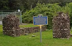 At the southwest corner of the parcel are the remaining stone gateposts from the Brown Estate, which included the entire mill property during the early 20th century. They are located just off Station Road, next to an electrical substation just east of the train station. There is a historical marker nearby as they are the most visible component of the listing.[1]