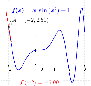 The concept of a slope is central to differential calculus. For non-linear functions, the rate of change varies along the curve. The derivative of the function at a point is the slope of the line tangent to the curve at the point and is thus equal to the rate of change of the function at that point.