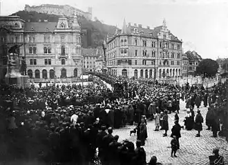 In 1917, the SLS had a decisive influence on the adoption of the May Declaration, in which members of the Reichsrat called for the union of South Slav lands under the Habsburg crown. Anton Korošec became the leader of the party in the same year. Even before the conclusion of negotiations on the fate of the Slovenes in the Habsburg Monarchy, Anton Korošec had supported the secession of the Slovenes and Croats from the Habsburg Monarchy and the creation of the State of Slovenes, Croats and Serbs. In 1920, the party reverted to its original name 'Slovene People's Party'.