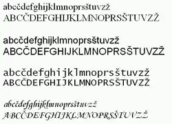 a, b, c, č, ć, d, đ, e, f, g, h, i, j, k, l, m, n, o, p, q, r, s, š, t, u, v, w, x, y, z, ž.