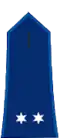 Insignias indicating the officer's rank are worn on the shoulder of a shirt or jacket. The insignias for regular officers are dark blue with one or more hexagram golden stars and a light-blue trim all-round. Higher-ranking officers have a golden all-round trim. Command staff insignias are embroidered with a golden Triglav-logo. The insignias of the deputy director general and the director general also have embroidered golden olive leaves.