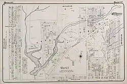Small's Creek was one of the three watercourses that flowed into Small's Pond, a small body of water of several acres in area, located near the intersection of Queen Street and Kingston Road, in Toronto, Ontario.[1] There is a small plain between the shore of Lake Ontario and the bluffs which marked the shore of the larger Glacial Lake Iroquois, Bedrock was shallow on the plain. Smalls Creek, Tomlin's Creek, the other watercourse that drains into Smalls Pond, and Ashbridge's Creek to the east were all small, short watercourses, with their headwaters on that small plain, had each become polluted by the turn of the 20th century, when the regions they flowed through were annexed into the growing city of Toronto.