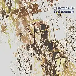 Smallcreep's Day opens with the 24-minute title track that has seven distinct movements.[5] It is based on the 1965 novel Smallcreep's Day, the only book written by Peter Currell Brown.[5] A satire on modern industrial life, the story follows Pinquean Smallcreep who has worked in the same factory for forty years and embarks on a journey of self-discovery as he follows its assembly line to find out what the factory produces.[4] Brown had in fact worked in a factory for forty years himself.[3] Rutherford had read the book roughly three years prior to starting work on the album, noting it had similarities to the Gormenghast series of fantasy novels by Mervyn Peake.[1] Though he considered it "hardly a great piece of literature", he was more impressed with its spirit and the atmosphere it presented as a reader.[7] He also chose the book as its story and setting were something he could work and develop from and adapted it to have a happy ending.[1][8] He later noted a strong contrast in themes between the factory and machine-oriented imagery on his album and the more romantic and fantasy-inspired Genesis songs typical of the time.[3] Rutherford had attempted to pass lines from the book as lyrics, but abandoned the idea as they failed to work effectively.[3]