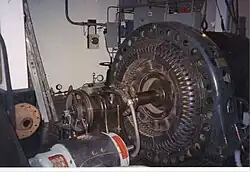 The living quarters and especially the power house/generator fell into disrepair and were heavily vandalized by the time of the historic registry survey in 1979.[2] A local resident, Eric Jacobson, acquired a 99-year lease from the Idarado Mining Company for the property in 1988 and proceeded to restore the building and its hydroelectric facility and eventually moved his family into the residence, raising three children at the precarious home. Jacobson restored the AC plant to operation in 1991 with power being generated by its original 2300 volt Westinghouse Electric AC generator, one of the oldest AC generators in operation.[4][5] In 2010 Jacobson gave up the lease to the Idarado Mining Company citing continual regulation and legal problems associated with the site.[3] Idarado has not kept the plant in operation, depriving the community of this readily available source of renewable power generation. As of 2012, under Jacobson's care, the plant generated approximately 2,000 megawatt hours per year – enough electricity to power about 2,000 average American homes – which was purchased from Jacobson by the local San Miguel Power Association.[6] Because the Bridal Veil Hydroelectric Power Plant is over 100 years old, restoring the generator to operation is a difficult feat.