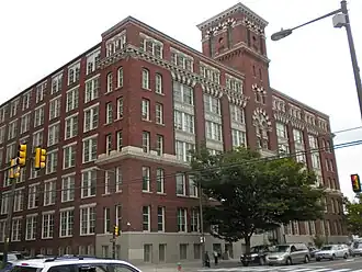 Snellenburg's Clothing Factory is a historic factory complex located in the Spring Garden neighborhood of Philadelphia, Pennsylvania. It was built by the N. Snellenburg & Company and consists of two parts: a large, ornate building built in 1903, and a long, narrow building built in 1905. They are connected by a bridge at the fourth, fifth, and sixth floors. The front building is seven stories, constructed of limestone and brick with terra cotta ornament, and features a central tower.[2]