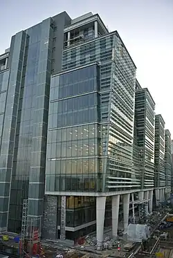 In August 2008, Ballymore announced that a review of the phasing and timing of the construction schedule is to be undertaken, which could lead to a delay in the construction of the residential tower as a result of the economic conditions.[78][79] Despite this, a spokesperson for the developers denied that construction on the project will be halted.[80]