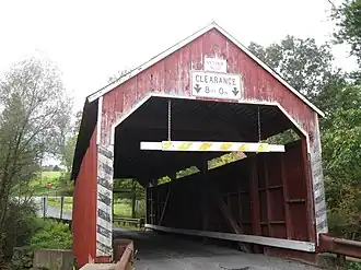 The Snyder Covered Bridge No. 17 is a historic wooden covered bridge located at Locust Township in Columbia County, Pennsylvania. It is a 60.2-foot-long (18.3 m), Queen Post Truss bridge with a galvanized steel roof constructed in 1860. It crosses Roaring Creek. It is one of 28 historic covered bridges in Columbia and Montour Counties.[2]