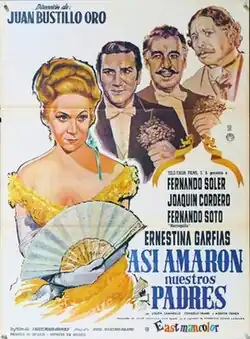So Loved Our Fathers (Spanish: Así amaron nuestros padres) is a 1964 Mexican historical comedy film directed by Juan Bustillo Oro and starring Fernando Soler, Ernestina Garfias and Joaquín Cordero.[1] [2] The film's sets were designed by the art director Manuel Fontanals. Shot in Eastmancolor, it is a remake of the 1939 film In the Times of Don Porfirio.