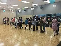 Social dances are dances that have social functions and context.[1] Social dances are intended for participation rather than performance.[2] They are often danced merely to socialise and for entertainment, though they may have ceremonial, competitive and erotic functions.