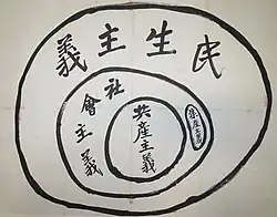 The Three Principles of the People are officially the ideology of the Republic of China as stated in the Constitution of the Republic of China. Mínshēng, defined as People's Livelihood or welfarism, is one of these principles.