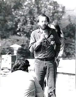 For over a decade, SLL organized annual anti-tax demonstrations in Southern California. One of the largest occurred in 1976 in downtown Santa Ana, California, along with the Libertarian Party. Protesters staged a "mock funeral, complete with coffin and flowers" which represented the "Tomb of the Unknown Taxpayer."[23] According to news reports, Karl Bray, a famous tax resister who had been imprisoned at Terminal Island was denied bail "to prevent him from attending" or speaking at the anti-tax rally.[24] Karl Bray's wife spoke in behalf of her husband.[25] The rally coincided with National Tax Protest Day.