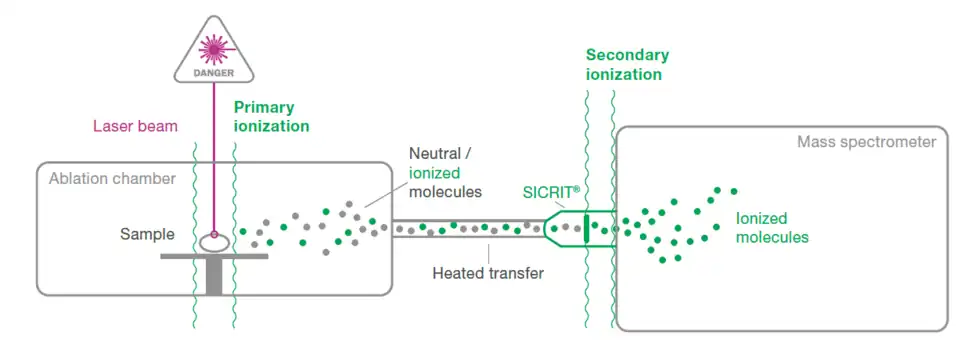 In combination with appropriate sample preparation and instrumentation, the SICRIT ion source can also be used for imaging mass spectrometry. The standard procedure typically involves elaborate sample preparation combined with laser desorption/ionization (e.g., MALDI or atmospheric pressure MALDI), allowing spatial visualization of biomolecules, for example, in tissue sections.[9]