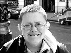 She was generally welcomed for her cheerful and affectionate nature, thanking benefactors with hugs and soft salutations such as "cuddle cuddle" and "love you".[1][4] One exception was at the famous Coach and Horses where the landlord, Norman Balon, would chase her away. When he retired in 2006, she said, "I'll miss looking in the window to check whether he's in or not".[5] The new landlord, Alistair Choat, was more friendly, allowing her two visits per day and inviting her to his wedding.[2] He said that her manner was especially polite and engaging, "It was her very gentle approach, she would never demand anything and she would just ask sweetly. She had this rocking motion, where she would rock on her feet and then chat, and she would always be counting the money she had in her hand, over and over and over. Most importantly, she was quite petite, she was quite childlike, but she was always very polite, so she just ingratiated people."[6]
