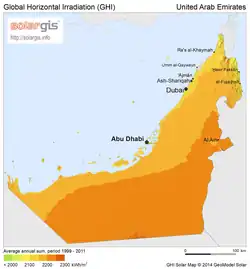 - ^ "Share of electricity production from solar: United Arab Emirates". Our World in Data. 2023. Retrieved 2024-04-07.
