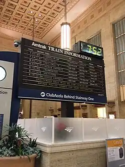 - The Solari board at 30th Street Station in Philadelphia, Pennsylvania, operated there from the 1970s to 2018, the last to operate in an Amtrak station. The board was subsequently moved to the Railroad Museum of Pennsylvania.[1]