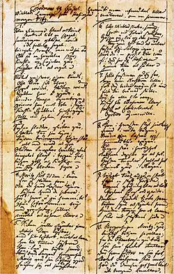 | 13 | Fönstren glittra, kännen J Ej Salpetersjuderi? En gång, Ulla – raljeri! – Palten dit dig leder. (The windows are shining, don't you know the Saltpeter factory? One day, Ulla – I'm joking! – The bailiffs will take you there.) |