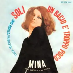"Soli" is a song recorded by Italian singer Mina. The song was written by Franco Castellano, Giuseppe Moccia and Bruno Canfora as the final theme of the TV program Studio Uno. Released as a single, the song entered the top 10 of the Italian chart.[1] The song "Un bacio è troppo poco" was used as the B-side.[2] None of the songs were included on any of Mina's studio albums.