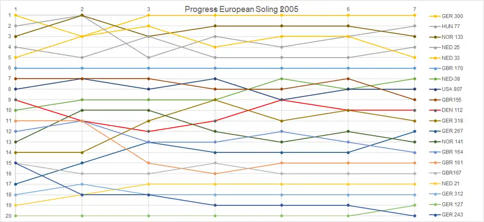 - ^ "Soling European Championship" (ASCII). site-isaf.soticcloud.net. World Sailing. 7–12 August 2005 [2005]. Retrieved 26 January 2022.