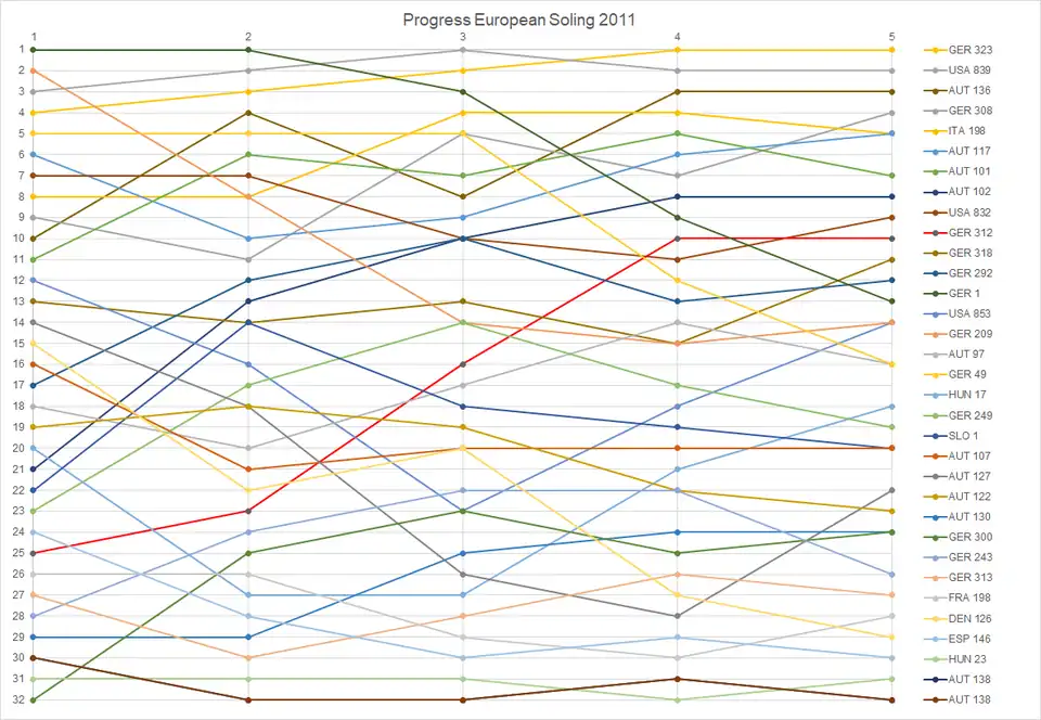 - ^ a b Collins, Matias, ed. (27 August – 4 September 2011) [2011]. "European Championship / SCK, Attersee 27/08/2011 To 04/09/2011. / Rk=1.5" (PDF). soling.com. International Soling Association. Retrieved 18 February 2022.
