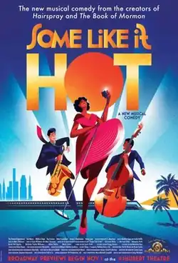 Some Like It Hot is a 2022 musical comedy with music by Marc Shaiman, lyrics by Scott Wittman and Shaiman, and a book by Matthew López and Amber Ruffin.[1] It is based on the 1959 MGM/UA feature film Some Like It Hot, which in turn was based on the 1935 French film Fanfare of Love. The musical, like the film, follows the story of a pair of male musicians who disguise themselves as women to escape from gangsters after witnessing a murder.[2]