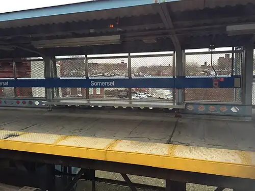 Between 1988 and 2003, SEPTA undertook a $493.3 million reconstruction of the 5.5-mile (8.9 km) Frankford Elevated.[5] Somerset station was completely rebuilt on the site of the original station; the project included new platforms, elevators, windscreens, and overpasses, and the station now meets ADA accessibility requirements.[5] The line had originally been built with track ballast and was replaced with precast sections of deck, allowing the station (and the entire line) to remain open throughout the project.[6]