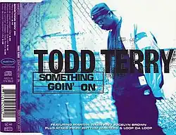 "Something Goin' On (In Your Soul)" is a song by American record producer Todd Terry featuring American singers Martha Wash and Jocelyn Brown on vocals. It was released as the second single from Terry's debut album, Ready for a New Day (1997). The song peaked within the top 5 in both Italy and the UK, peaking at number four and five. It also reached number-one on the UK Dance Singles Chart and the US Billboard Dance Club Play chart. The original song title was shortened to "Something Goin’ On" upon its release as a single, even though the full title was listed on the album.