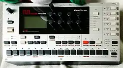 Sophie primarily used the Elektron Monomachine synth-sequencer and Ableton Live workstation to create music.[71] Apart from vocals, Sophie created original synthesised sounds from the elementary waveforms by using the Monomachine, eschewing the use of samples.[38] Likening the construction of a track to building a sculpture out of different materials, she synthesised sounds resembling "latex, balloons, bubbles, metal, plastic, [and] elastic".[38][71][72] Tiny Mix Tapes described her production as "liquid metal or maybe the noise equivalent of non-Euclidean geometry".[73] Sophie told Billboard that the genre of music she produced was "advertising".[74]