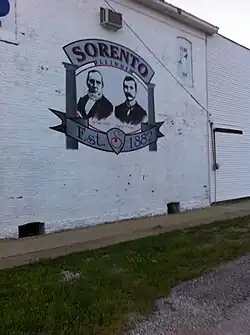 Sorento was founded as a village in 1882.[5] The town was laid out and platted on August 15, 1882, by August H. Scharf, a local farmer and businessman, and his father, William Scharf.[5] They named the town Sorento after Sorrento, Florida, a town they had once visited.[5] The town grew quickly and by the end of 1883 there were over 500 residents.[6]