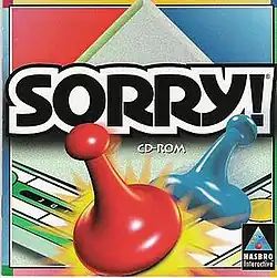 Sorry! (also unofficially referred to as Sorry! '98) is a 1998 video game based on the board game of the same name. It offers classic Sorry! and a mode called Way Sorry!, where new cards are introduced, including Bully, Buddy, Punish, and Happy. The animated pawns talk, joke, and make amusing remarks during gameplay that relate to the colors' personalities. There are cutscenes as well, which show what happens afterward when a specific color wins. Rules are identical to normal play; however there are some options for "house rules", such as being allowed to bump teammates. Both the Classic (playing cards drawn) and Strategy (playing cards from hand) games are available.