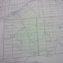 It was not until 1824 that George Tillson came forward to purchase 600 acres in Dereham's south end, agreeing to pay £300, about fifteen times the 1800 sale price. Tillson was a foundryman from Massachusetts who had come to Upper Canada two years earlier to join a partnership which operated a blast furnace in the long Point area to manufacture stoves and other household goods using bog ore gathered from nearby swamps. He recognised a similar opportunity in Dereham and became the founder of Dereham Forge, now Tillsonburg. His foundry works continued for a number of years but were closed in the 1840s as Tillson devoted his resources instead to building and operating saw mills to tap into enormous demand for lumber in New York state. Sawn boards were lashed together in giant rafts and floated down Otter Creek from Dereham to Port Burwell for export.[14]
