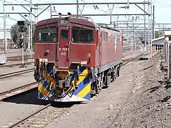 The Class 7E was initially placed in service on the coal line from Ermelo to Richards Bay.[8] When later model 25 kV AC locomotives were acquired, a few Class 7E locomotives went to the Pyramid South and East London lines, but the majority were transferred to the Cape Midland system to work goods and passenger traffic from Kimberley via De Aar to either Port Elizabeth or Beaufort West.[1]