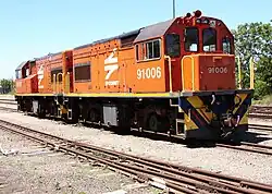 Between September and December 1973, the South African Railways placed twenty Class 91-000 General Electric type UM6B diesel–electric locomotives in service on its narrow-gauge Avontuur Railway between Port Elizabeth in the Eastern Cape and Avontuur in the Western Cape. Some of them later also worked on the Alfred County Railway out of Port Shepstone in KwaZulu-Natal.[1][2][3]