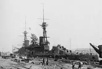 Money for a naval building program was allocated in 1910.[77] Although the Chilean government solicited bids from several armament companies, nearly all believed that a British company would win the contract; the American naval attaché opined that without anything short of a revolution the contracts were destined for the United Kingdom. The Chilean Navy had cultivated extensive ties with the United Kingdom's Royal Navy since the 1830s, when Chilean naval officers were given places on British ships to receive training and experience they could bring back to their country. This relationship had recently been cemented when a British naval mission was requested by Chile and sent in 1911.[78] Still, the American and German governments attempted to swing sentiment to their side by dispatching modern naval vessels (Delaware and Von der Tann, respectively) to Chilean ports. Their efforts were futile, and the design tendered by Armstrong Whitworth was chosen on 25 July 1911.[79]