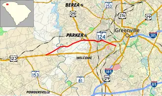 South Carolina Highway 124 (SC 124) is a 5.630-mile (9.061 km) state highway in the U.S. state of South Carolina. The highway connects Parker and Greenville.
