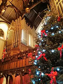 The organ and hammerbeam ceiling at Christmas