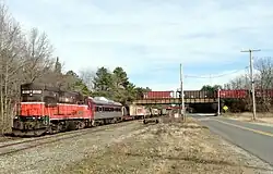 JP Rail, Inc., a Pennsylvania corporation doing business as SRNJ,[2] operates tracks in the Winslow area that originally belonged to the New Jersey Southern Railroad, and which were later acquired by the Central Railroad of New Jersey (in the 1880s) and subsequently Conrail (1976) and the New Jersey Department of Transportation (NJDOT; 1984).[3] SRNJ acquired operating rights to the 15.5 miles (24.9 km) Winslow-Vineland route, known as the Winslow Branch, from The Shore Fast Line, Inc. (SFLR) in 1991.[4] (SFLR, a freight carrier, is not to be confused with the Shore Fast Line, an interurban passenger railroad that was operated by the Atlantic City and Shore Railroad from 1907 to 1948.)