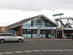 Southsea Hoverport is adjacent to Clarence Pier in the Southsea area of Portsmouth in southern England. From here frequent hovercraft services leave for Ryde on the Isle of Wight. The journey time is quicker than the conventional boats that sail from Gunwharf Quay, elsewhere in Portsmouth, but the hovercraft are more prone to service curtailment in inclement weather. Another problem are connections from here as when the service first started in the mid-20th century much of the land closer to Portsmouth and Southsea station was already occupied by both residential and naval units. To help alleviate this problem Stagecoach run the "Hoverbus" linking the terminal with Portsmouth and Southsea station and Portsmouth city centre. The nearest railway station is Portsmouth Harbour railway station, although Portsmouth and Southsea station is not much further away.