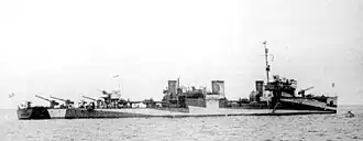 Valerian Kuybyshev (Russian: Валериан Куйбышев) was an Leytenant Ilin-class destroyer built for the Imperial Russian Navy during World War I under the name of Kapitan Kern (Russian: Капитан Керн). Launched in 1915, construction was suspended at the end of 1917. She was seized by the Bolsheviks during the October Revolution, but construction did not resume until 1924. The ship was renamed Rykov (Russian: Рыков) the following year. Completed in 1927 and serving in the Baltic Fleet, she was transferred to the Northern Flotilla six years later.