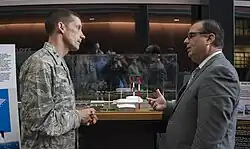 Deputy Commander of Air Force Space Command, accepts a model of the Space Fence radar site at Peterson Air Force Base.
