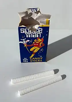Spaceman Candy Sticks, formerly Space Man cigarettes[1] are a white candy stick lolly from New Zealand. It is common for New Zealand children to pretend that they are cigarettes.[2] They are made in Palmerston North by Carousel Confectionery,[3] and have been around since the early 1970s.[4]