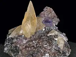 Generally, a spar will form underwater, either in a phreatic zone, or below the water table, the essential place where most caves form, or in standing pools, as pool spar.[1] If a cave floods and a pool forms, that submerges stalactites, a formation known as bottlebrushes may form.[2] Mineral component ions dissolved in water are mostly deposited as minerals such as calcite and gypsum, and sometimes even halite, quartz, and fluorite, through the course of thousands of years, building up on each other.