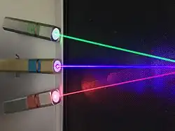 The first person to decompose white light and name the spectral colors was Isaac Newton, in the 1660s.[1] Early in the study of radiometry, Newton was not able to measure the wavelength of the light, but his experiments were repeated contemporarily to estimate wavelengths where his color term boundaries probably lay.[2] Newton's color terms included red, orange, yellow, green, blue, indigo, and violet; this color sequence is still used to describe spectral colors colloquially and a mnemonic for it is commonly known as "Roy G. Biv".