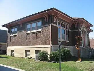 The old Spencer Public Library is a former public library and historic Carnegie library located at Spencer, Owen County, Indiana. It was built in 1912, and is a one-story, three-bay, American Craftsman style brick building on a raised basement. It has a low-pitched hipped roof and projecting entry bay. It was constructed with a $10,000 grant provided by the Carnegie Foundation.[2]: 5