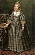 A close relative of Henry Spencer (died c. 1478) was John Spencer, who in 1469 had become feoffee (trustee) of Wormleighton Manor in Warwickshire and a tenant at Althorp in Northamptonshire in 1486. His nephew, Sir John Spencer (died 1522), first made a living by trading in livestock and other commodities and eventually saved enough money to purchase both the Wormleighton and Althorp lands. Wormleighton was bought from Sir William Cope in 1506. The manor house was completed in 1512.[5] In 1508, Spencer also purchased the estate of Althorp with its moated house and several hundred acres of farmland.[6] He had grazed sheep here from the 1480s. Impressed by the quality of the land, he eventually bought it and rebuilt the house in 1508.[7] At that time, his estate and mansion in Warwickshire were considerably larger, and the house in Wormleighton was four times the size of Althorp.[7] In 1511, he made further purchases to acquire the villages of Little Brington and Great Brington as well their parish church of St Mary the Virgin, from Thomas Grey, 2nd Marquess of Dorset.[6] By putting down roots at Althorp, Spencer provided what was to become a home for the next 19 generations.[7] In 1519, he was knighted by King Henry VIII, died three years later and was buried in the new family chapel at Great Brington.[6]